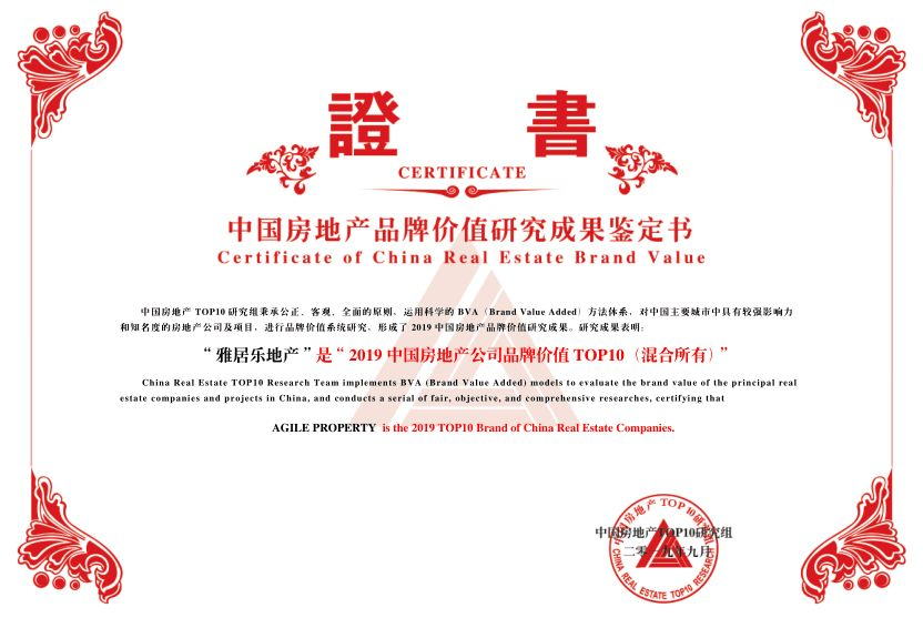 9月10日,中國房地產TOP10研究組在北京舉辦“2019中國房地產品牌價值研究成果發布會暨第十六屆中國房地產品牌發展高峰論壇”。憑借優秀的綜合實力和杰出的品牌價值,雅居樂地產榮膺“2019中國房地產公司品牌價值TOP10(混合所有)”,位列第4名。研究組信息顯示,通過系統測算,雅居樂地產的品牌價值達313億元。